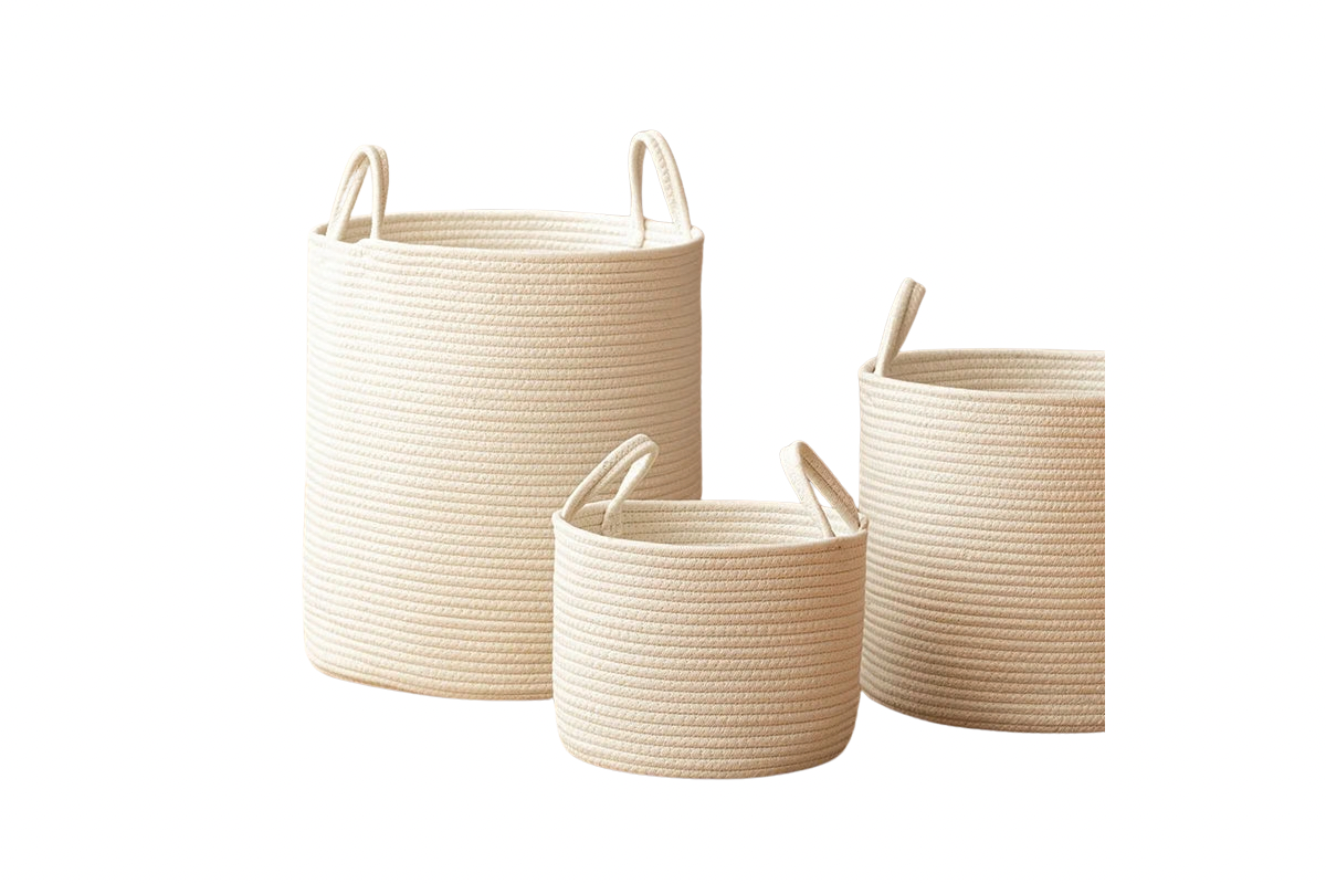 Natürlich, weich und zeitlos. Dieses 3er Set gewebter Aufbewahrungskörbe bringt Ordnung in euer Zuhause – auf leise, stilvolle Weise. Der angenehme Weißton fügt sich harmonisch in jede Umgebung ein und schafft eine ruhige, aufgeräumte Atmosphäre.